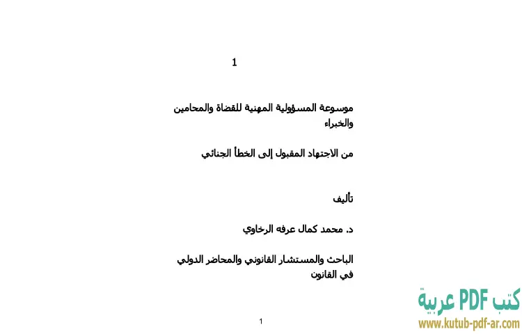 تحميل كتاب موسوعة المسؤولية المهنية للقضاة والمحامين والخبراء PDF – محمد كمال الرخاوي – موسوعة المسؤولية المهنية للقضاة والمحامين والخبراء تعتبر مرجعًا هامًا يتناول موضوع المسؤولية المهنية في النظام القانوني. الكتاب يسلط الضوء على مختلف الجوانب القانونية والأخلاقية التي تحكم عمل القضاة والمحامين والخبراء، مما يساعد على فهم أبعاد المسؤولية المترتبة على أفعالهم. من خلال تحليل دقيق، يقدم المؤلف دكتور محمد كمال الرخاوي نظرة شاملة على الاجتهادات المقبولة وكيف يمكن أن تتحول إلى أخطاء جنائية في حالات معينة.