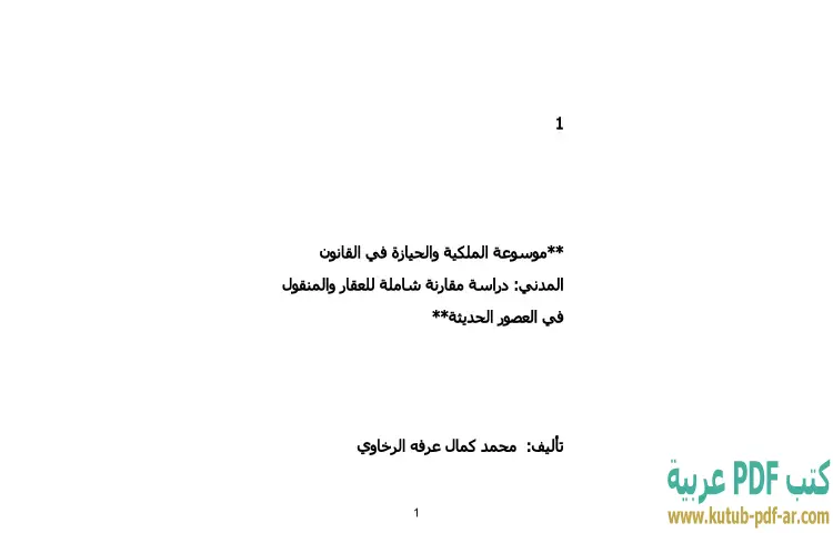 تحميل كتاب موسوعة الملكية والحيازة في القانون المدني PDF – محمد كمال الرخاوي – موسوعة الملكية والحيازة في القانون المدني هي عمل أكاديمي متميز للدكتور محمد كمال الرخاوي، يقدم دراسة مقارنة شاملة حول مفهوم الملكية والحيازة، مع التركيز على العقارات والمنقولات في العصور الحديثة. يستعرض الكتاب بشكل مفصل الأنظمة القانونية المختلفة المتعلقة بالملكية والحيازة، مما يتيح للقارئ فهم كيفية تطور هذه المفاهيم عبر الزمن وتأثيرها على القوانين المعاصرة.