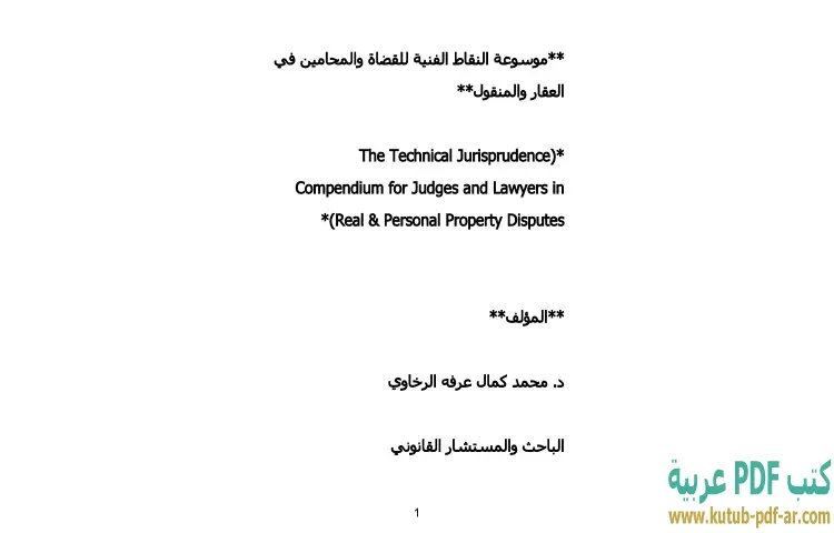 تحميل كتاب موسوعة النقاط الفنية للقضاة والمحامين في العقار والمنقول PDF – محمد كمال الرخاوي – موسوعة النقاط الفنية للقضاة والمحامين في العقار والمنقول تأليف دكتور محمد كمال الرخاوي تعد مرجعًا هامًا في مجال القانون، حيث تجمع بين الجوانب النظرية والتطبيقية التي يحتاجها المتخصصون في القانون. يتناول الكتاب مجموعة من النقاط الفنية التي تساهم في توضيح الإجراءات القانونية المتعلقة بالعقارات والمنقولات، مما يساعد القضاة والمحامين على فهم القضايا بشكل أعمق وأكثر دقة.