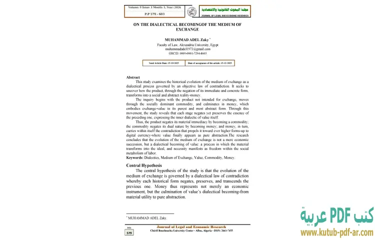 تحميل كتاب On the dialectical becoming of the medium of exchange PDF – محمد عادل زكي